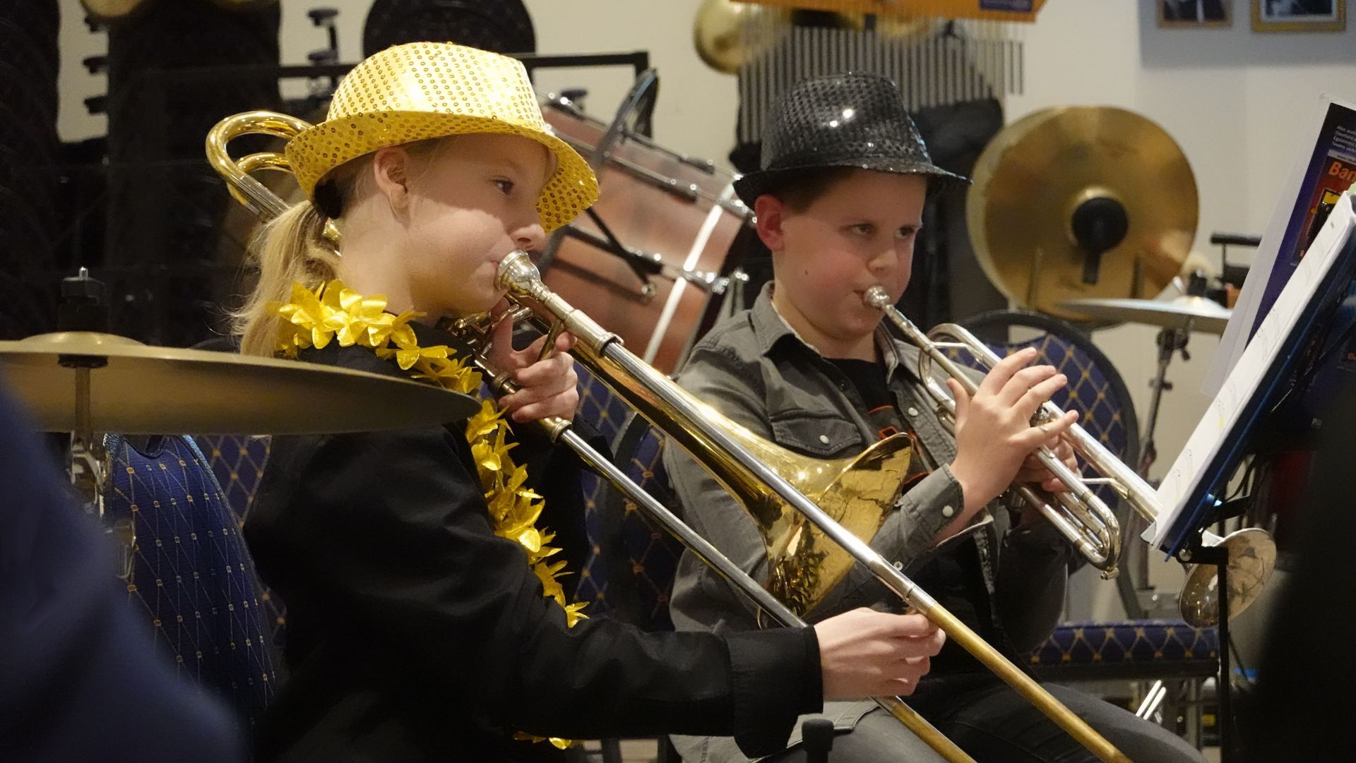 Muzieklessen voor saxofoon, koperinstrumenten en slagwerk